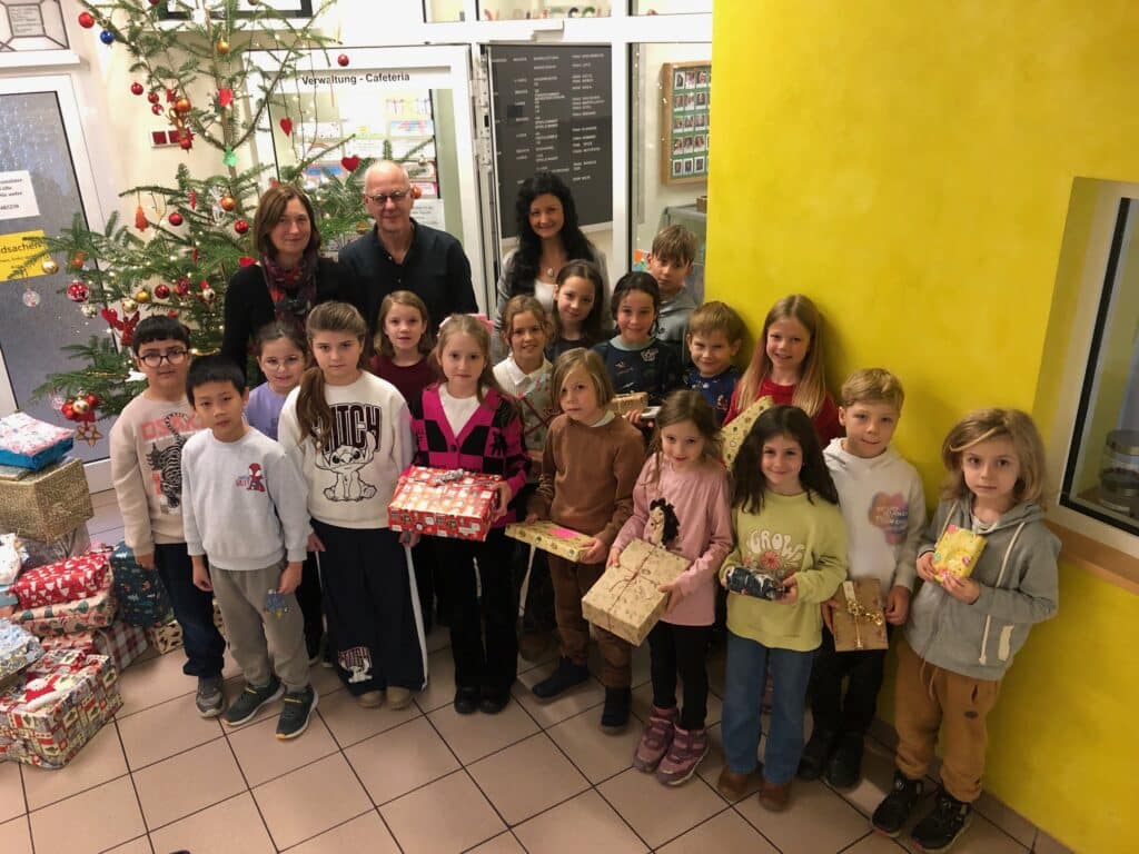 „ Es ist einfach wichtig, anderen eine Freude zu machen und Licht zu schenken, wo es manchmal dunkel ist“, sagt Annerose Schleemilch, Rektorin der Kolpingschule Aschaffenburg. Kinder aus allen Klassen der Schule übergeben stellvertretend mit der Elternbeiratsvorsitzenden, Frau Rüttger, 177 wunderschön verpackte Weihnachtspäckchen an Wolfgang Grose, den Leiter des Diakonie-Sozialkaufhauses. Und sie wissen warum: „Kein Kind darf ohne Weihnachtsgeschenk bleiben, wenn die Eltern sich das nicht leisten können.“